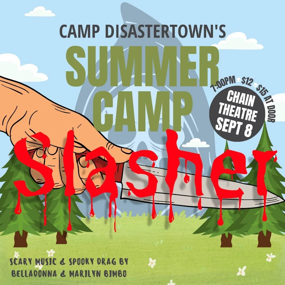 I know what you did last summer. Do you know what Disastertown did? WE WENT TO CAMP!!! A place for s’mores, scary stories, and… MURDER? There’s a killer on the loose! Who will survive? Will ANYBODY make it out alive? And hey, who even is this killer anyway? That’s up to you, the audience! Watch as 7 improvisers try to navigate the mysteries and mayhem YOU throw at them! Featuring a SPOOKY drag performance from Marilyn Bimbo and EVEN SPOOKIER music from Belladonna!