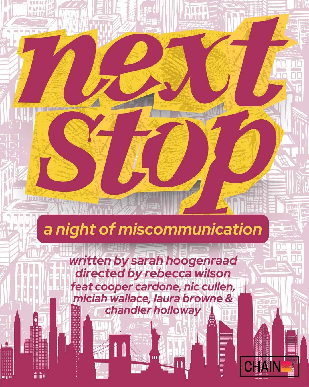 Cooper Cardone (ADAM) is a multidisciplinary artist from Rhode Island and is thrilled to be joining the Chain One Act Festival this year! A graduate of Brown University, he collaborates with various artists in musical theatre as a freelance composer, arranger, music director, and conductor. As an actor, recent theater credits include Speakeasy Die Softly (Times Square) and This Stop (Secret Theatre). Recent film credits include Unveiling (Lukas Gordon) and Fracture (Charles Shi). Website: www.coopercardone.com.