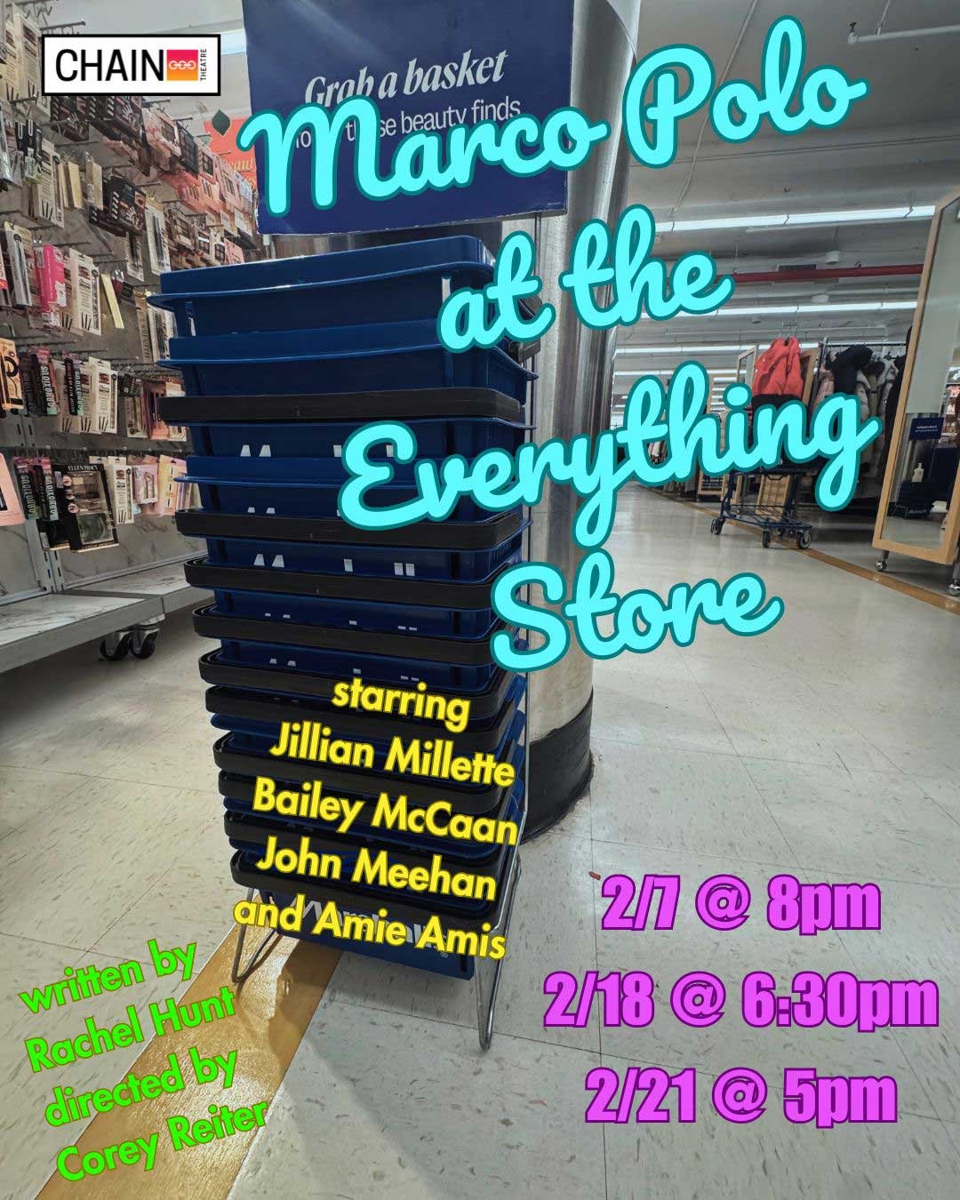 Near closing time in an off-price department store, a self-involved customer begins a game of Marco Polo in hopes of tracking down her boyfriend. She is horrified when, instead, she summons her future self and must confront her life choices, while the employees just want to go home.