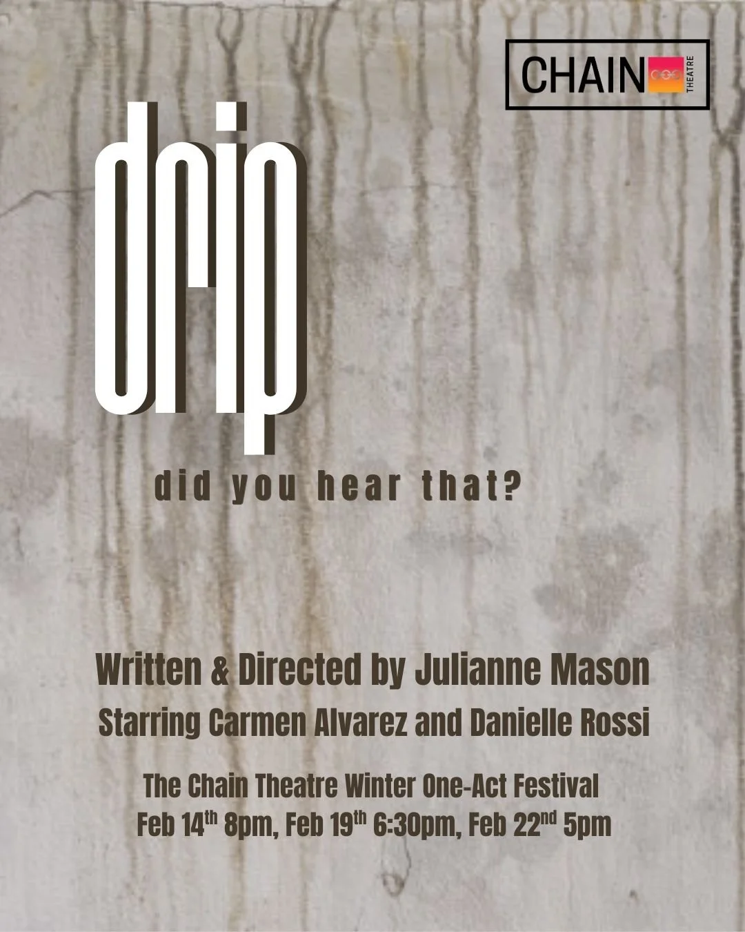 After JADE gets a promotion and moves into her first solo apartment, she becomes consumed by an unexplained dripping sound that slowly erodes her confidence, sanity, and sense of reality.