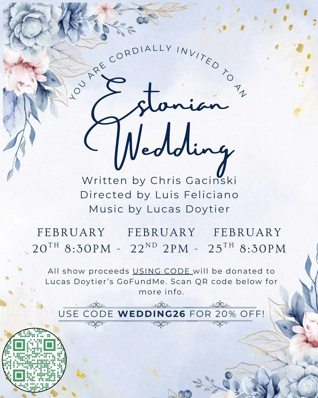 HUDSON BROWN is an emerging actor based in NYC/LA, passionate about telling authentic, character driven stories, he is a versatile actor who brings depth to dramatic roles and sharp wit to comedies. He is thrilled to be playing Issac in Estonian Wedding! Recent credits include playing Gregory on Amazon’s “Countdown”, Dale Jenkins in the independent 70’s Roller Disco movie and Alex on stage in “Cafe Americano”. He recently finished his training at NYU Atlantic Theater Company and is currently continuing his training at NYU Stonestreet Studios. He is forever thankful for the support he has received from his Mom, Dad and brother Griffin.