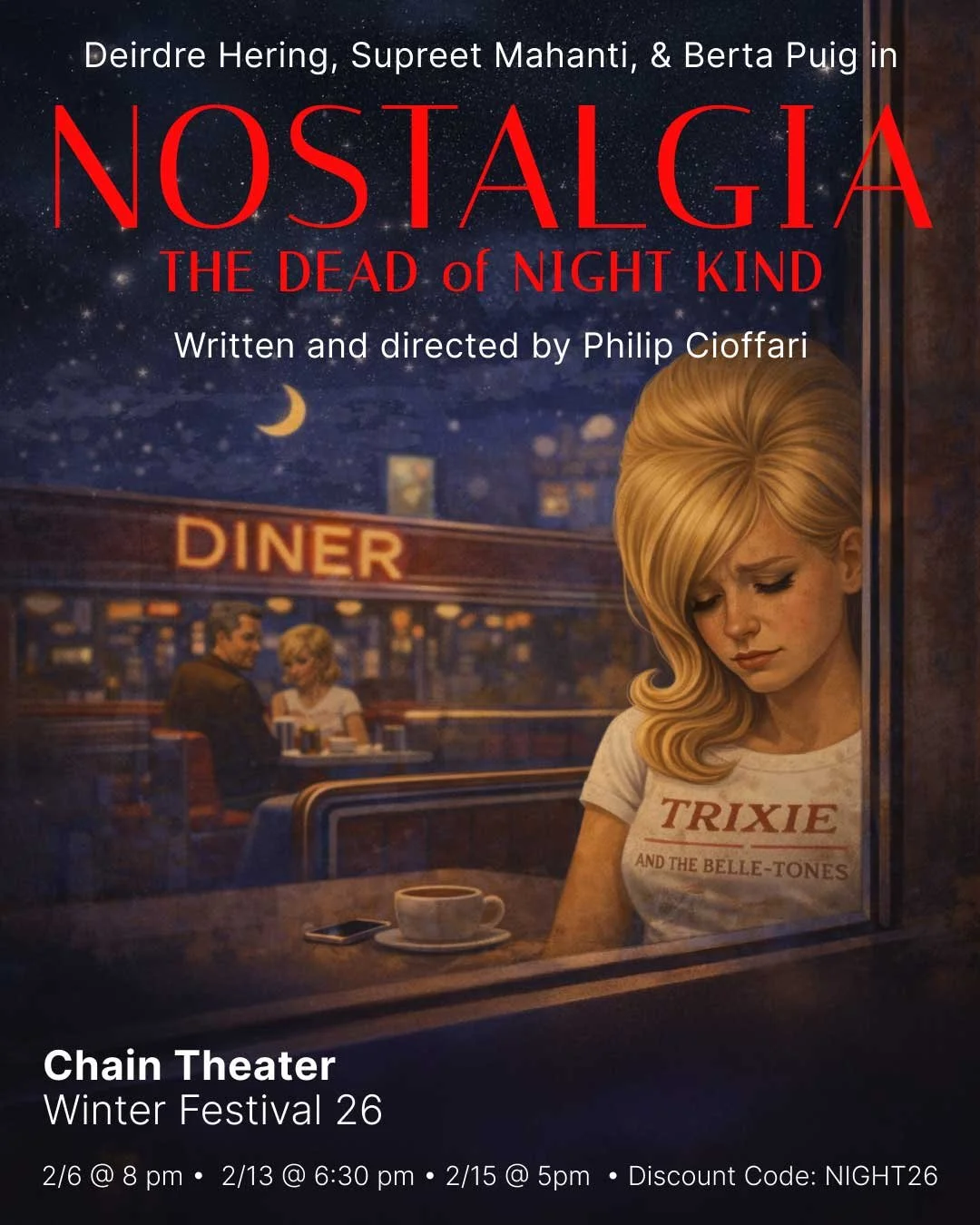 Berta Puig (Magdalena the Waitress) is an actor and director from Barcelona. She has been involved with theater since childhood. She has studied at Laura Jou in Barcelona and at HB Studio here in NY. This is her debut performance in NYC.