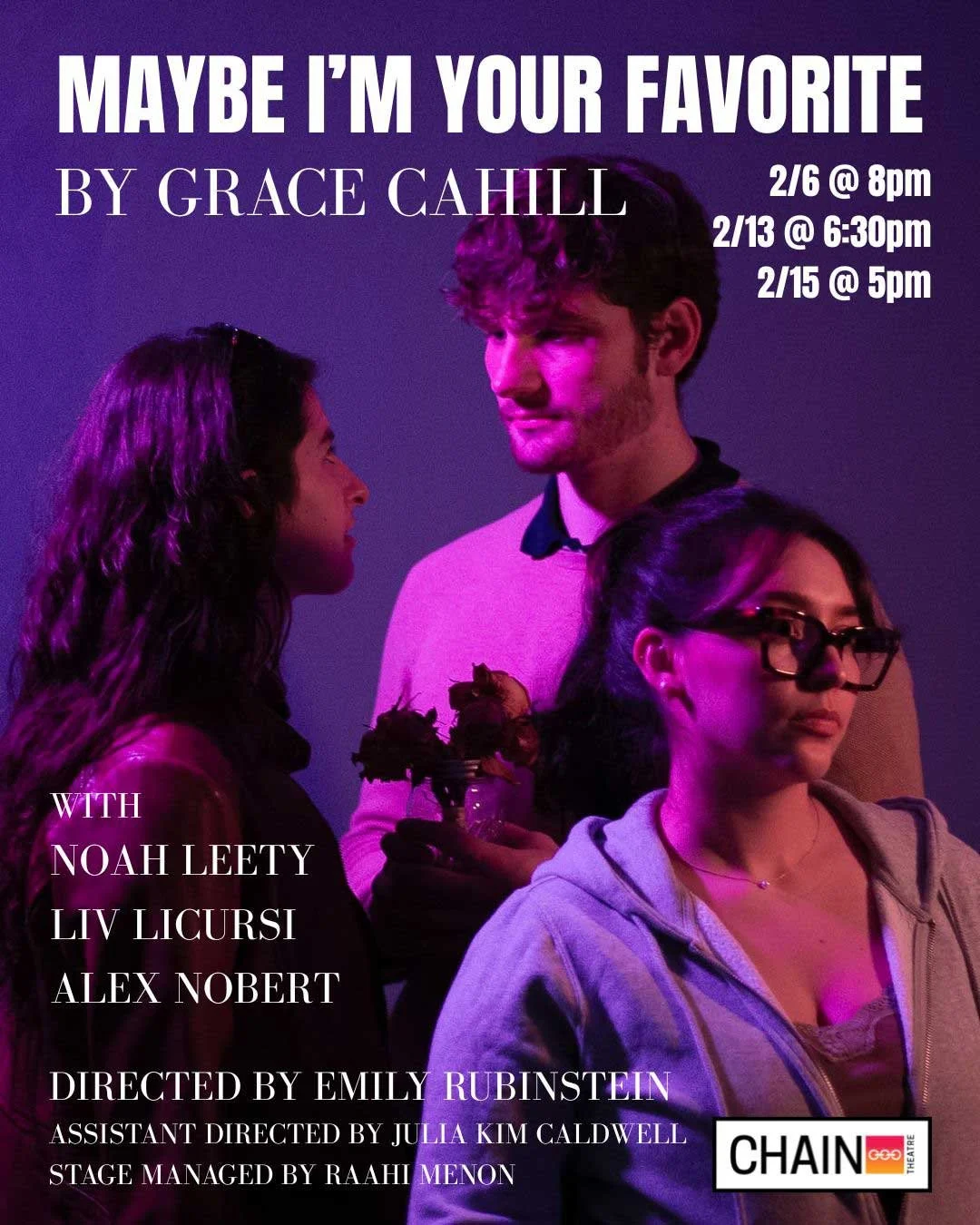 As the date arrives, Theo relies on his long-distance friend Alma for support. Maybe I’m Your Favorite is a 15-minute play premiering at the Chain Theatre Winter One-Act Play Festival about relationships, about romanticism, about things not always going the way we want. And maybe that’s okay.