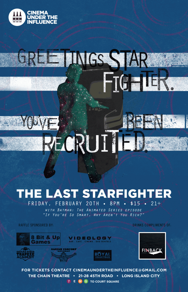 Cinema Under The Influence is back–hot on the high-heels of a sold-out screening of “The Birdcage”–with a special presentation of 1984′s coming-of-age, sci-fi gamer classic “The Last Starfighter” (1984, Dir. Nick Castle, Runtime 101 minutes.) Often imitated but never bested, “Starfighter” is the story of Alex, a seemingly average teen stranded in the middle of anywhere America who realizes his life is meant for more after achieving the high-score on a gas station arcade game. Featuring a cutting-edge ’80s mash-up of practical effects, creature make-up, and CGI, this underrated gem is space opera of the highest caliber and demands to be seen big, played loud, and experienced under the influence!