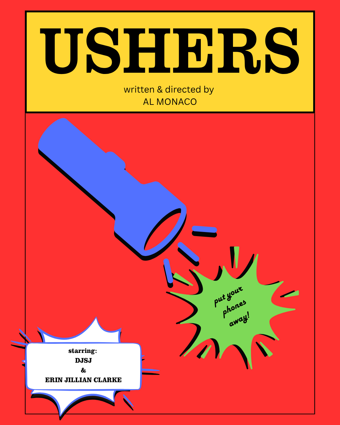 Synopsis: "Ushers" is a quick look into the unconventional world of Broadway's silent soldiers, ushers and all that can happen in the fifteen minutes before the lights go down and the show begins.